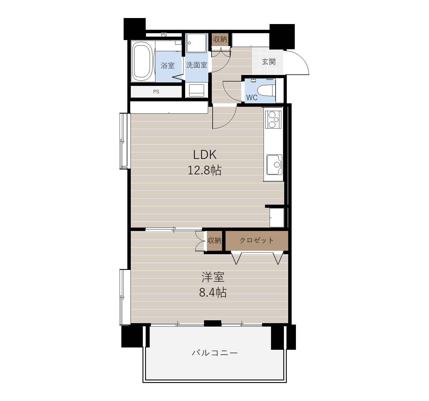 間取内容 LDK12.8帖 洋室8.4帖